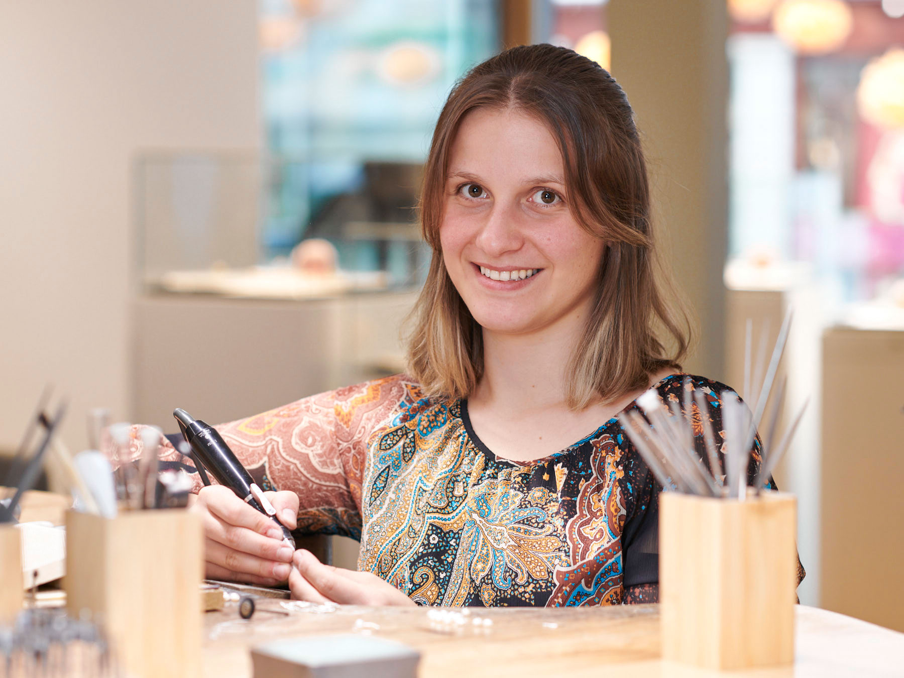 Frau Marie Knapp hat ihr Goldschmiedetalent schon in die Wiege gelegt bekommen und es mit dem Titel Bundessiegerin unter Beweis gestellt. Auch die Titel Siegerin der guten Form und Siegerin des jungen Cellini-Wettbewerbs zeigt Ihr besonderes handwerkliches Geschick. Als Goldschmiedegesellin und Diamantgutachterin bereichert Sie mit Ihrem Wissen und Können definitiv unser Team.